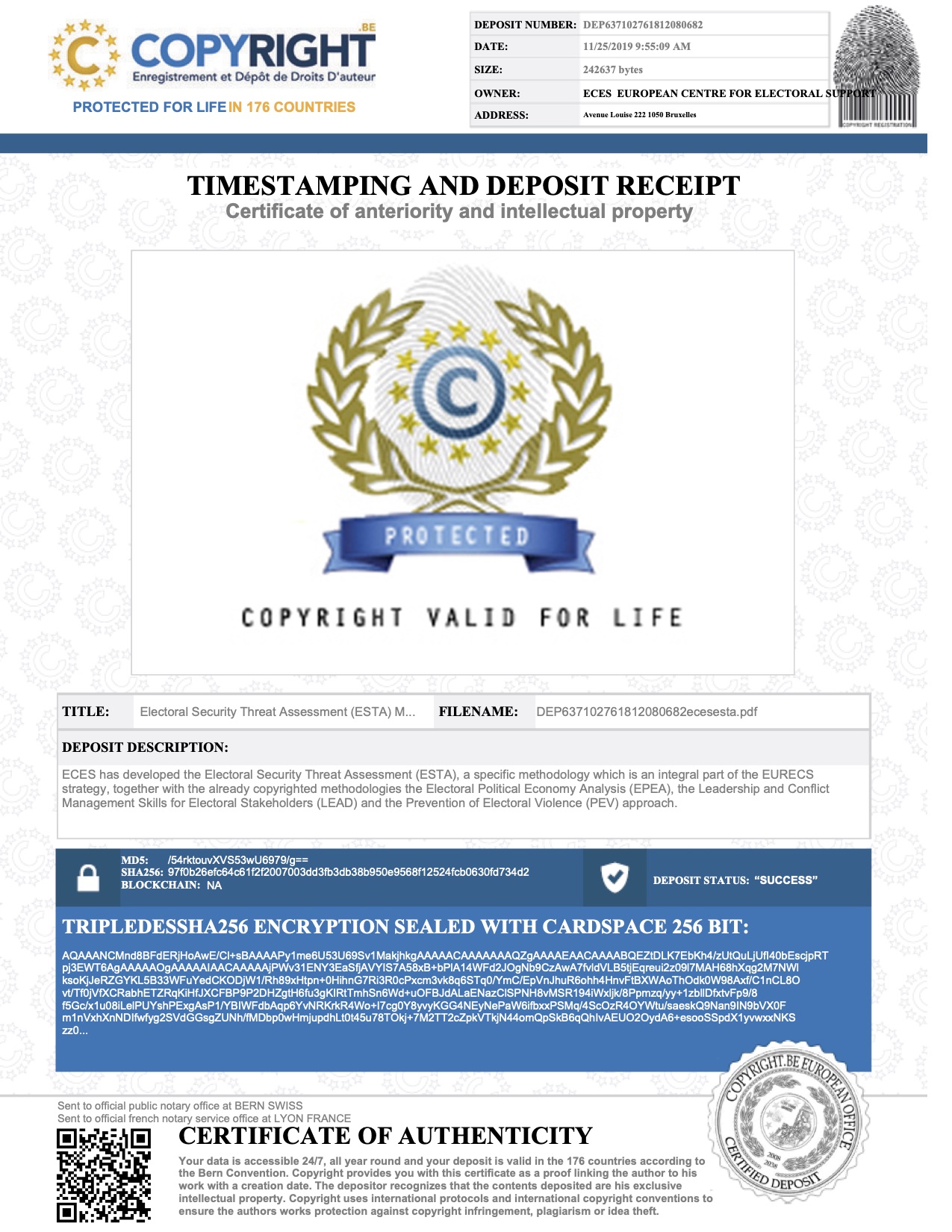 L'évaluation de la menace pour la sécurité électorale (ESTA) est une activité de cartographie des parties prenantes sous copyright d'ECES qui identifie et surveille les conflits localisés et les menaces externes affectant les scénarios électoraux et politiques dans un pays donné.