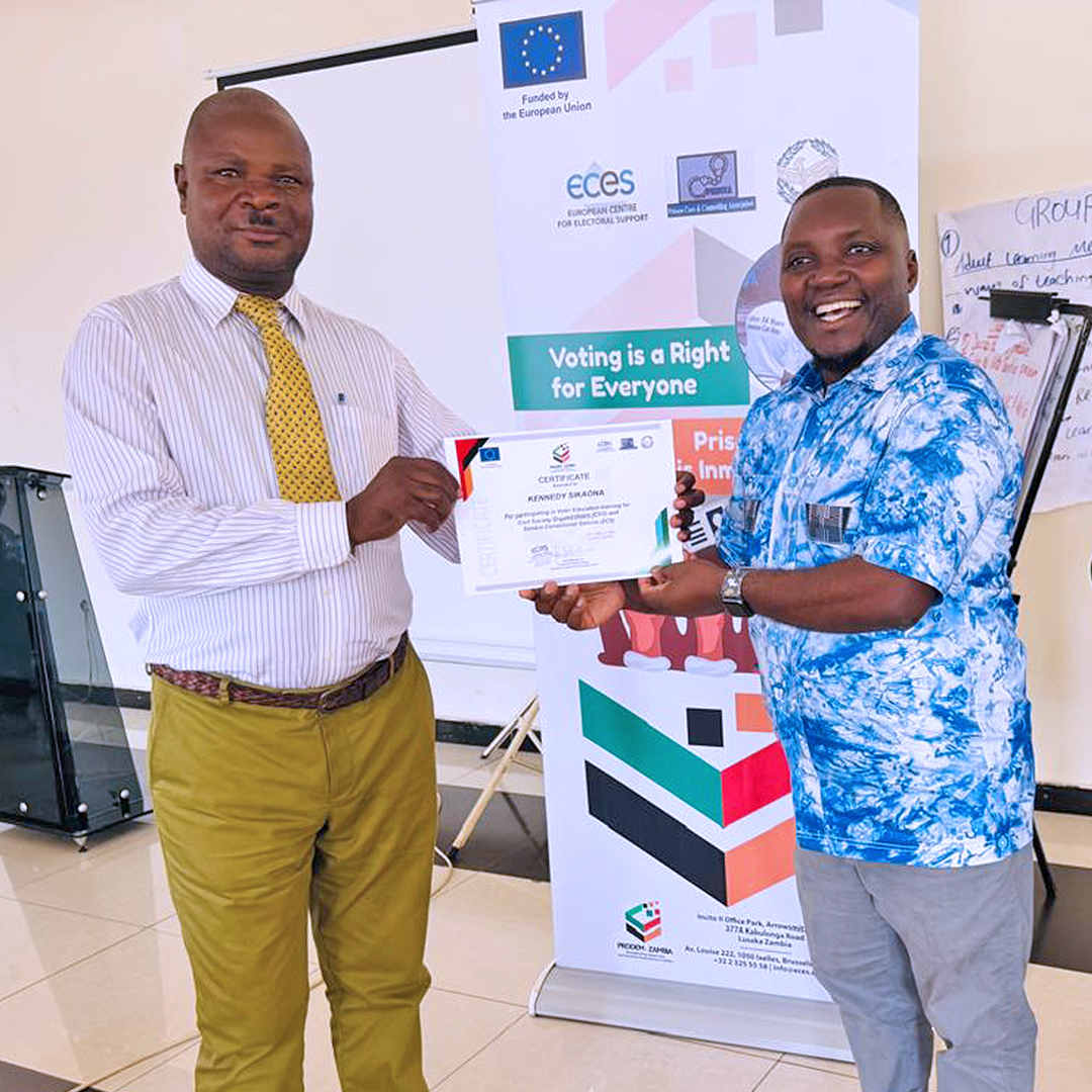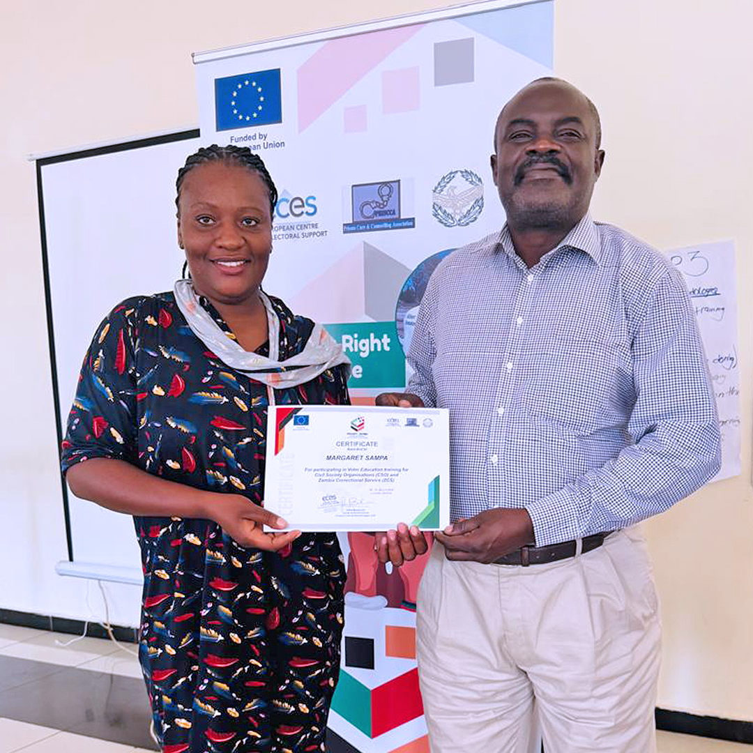 In the lead-up to Zambia’s General Elections scheduled for August 2026, the European Centre for Electoral Support (ECES), in partnership with the Prisons Care and Counselling Association (PRISCCA), the Electoral Commission of Zambia (ECZ), and the Zambia Correctional Service (ZCS), successfully delivered a two-day training on voter education in Lusaka.