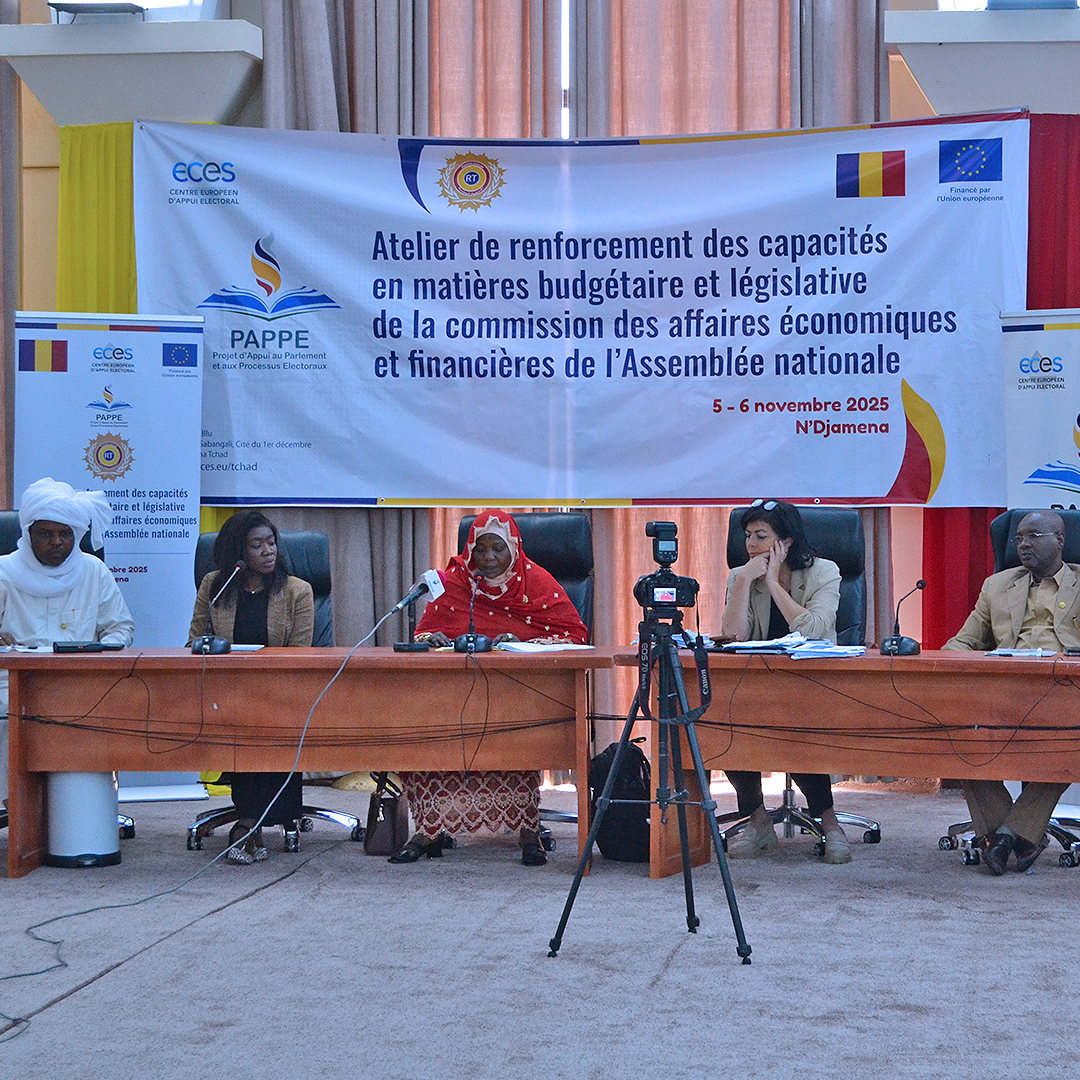 The Support Project to the Parliament and Electoral Processes (PAPPE), funded by the European Union and implemented by the European Centre for Electoral Support (ECES), is organizing a two-day training workshop on 5–6 November 2025 at the Palace of Democracy in N’Djamena, for members of the Committee on Economic and Financial Affairs (CAEF) of the National Assembly of Chad.
