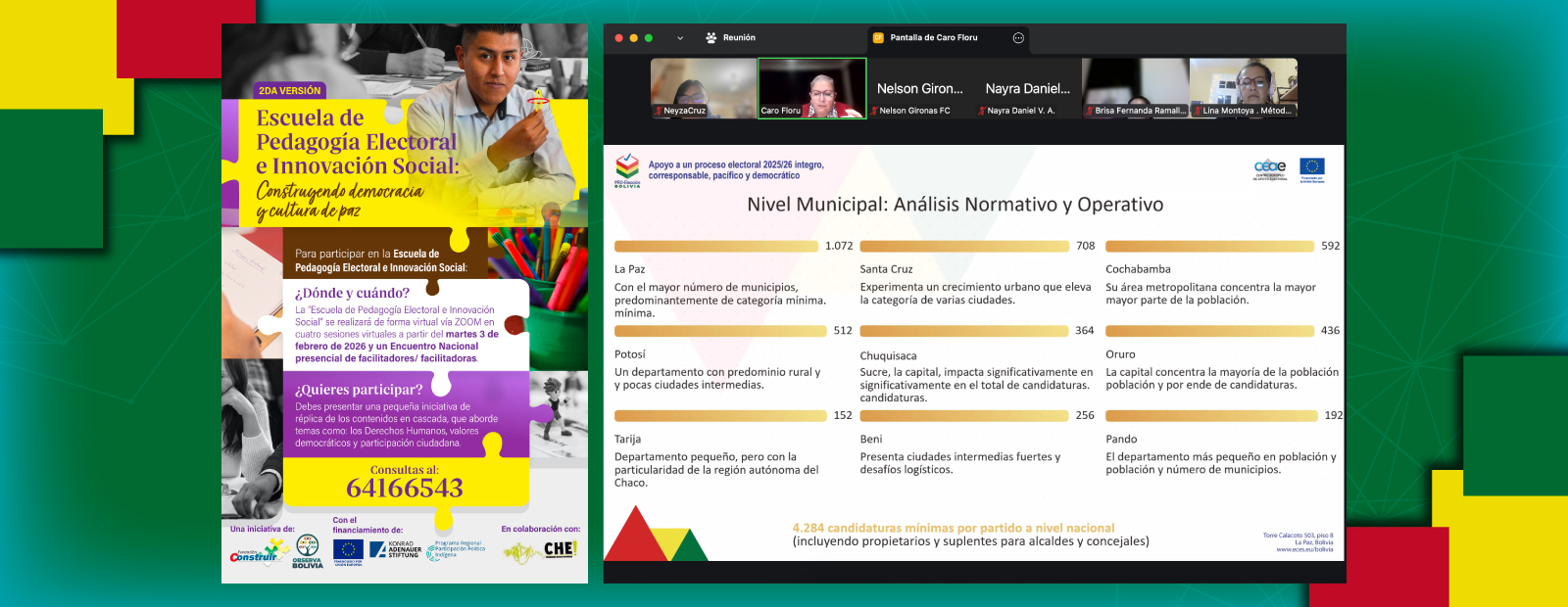 Through this second edition, Fundación CONSTRUIR, ECES, and their partners reaffirm their commitment to strengthening a more informed, participatory, and peaceful democratic practice in Bolivia by fostering citizens as agents of change and builders of peace.