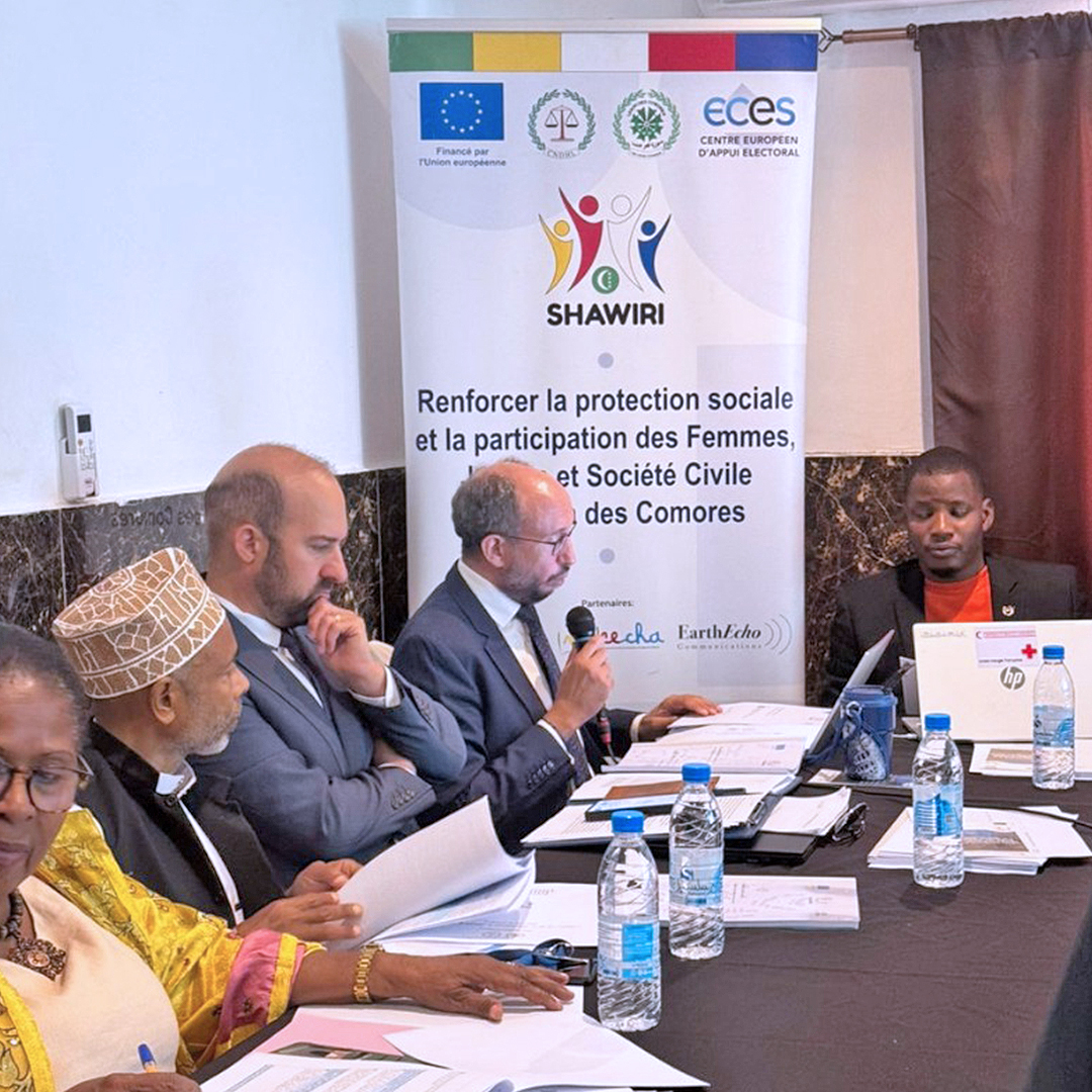The Shawiri Project is implemented in the Union of the Comoros by a consortium led by ECES, together with the French Red Cross/Comorian Red Crescent Movement, the NGO MAEECHA, and EarthEcho Communications. The project seeks to strengthen social protection and civic participation among women, youth, and civil society across the country.